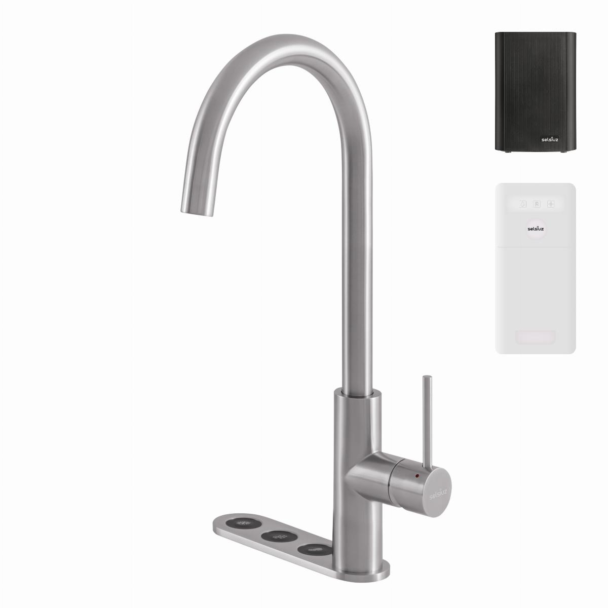 De 5-in-1 Selsiuz Unlimited Rond geeft koud, warm, gekoeld, bruisend en kokend water. Met de stijlvolle en functionele drukknoppen tapt u veilig kokend water en eenvoudig gekoeld en bruisend water. De rechter hendel bedient het koude en warme water. De kraan wordt geleverd met de Selsiuz Classic boiler en Selsiuz Cooler.