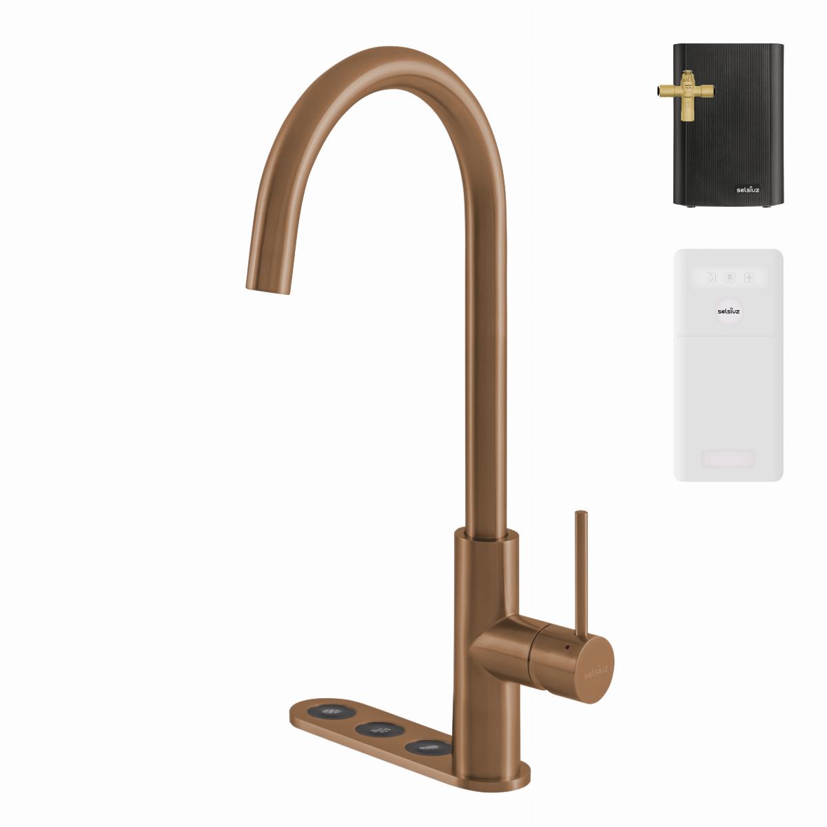 De 5-in-1 Selsiuz Unlimited Rond geeft koud, warm, gekoeld, bruisend en kokend water. Met de stijlvolle en functionele drukknoppen tapt u veilig kokend water en eenvoudig gekoeld en bruisend water. De rechter hendel bedient het koude en warme water. De kraan wordt geleverd met de Selsiuz Classic boiler en Selsiuz Cooler.
