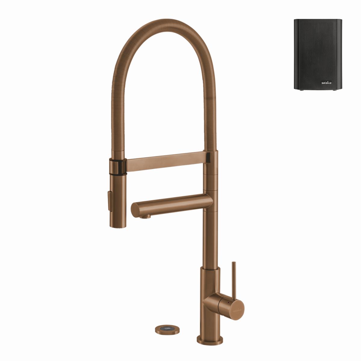 De Push 3-in-1 XL heeft een stijlvolle en functionele drukknop voor kokend water die op het keukenblad wordt gemonteerd. De rechter hendel bedient het koude en warme water. De kraan wordt geleverd met de Selsiuz Click boiler.