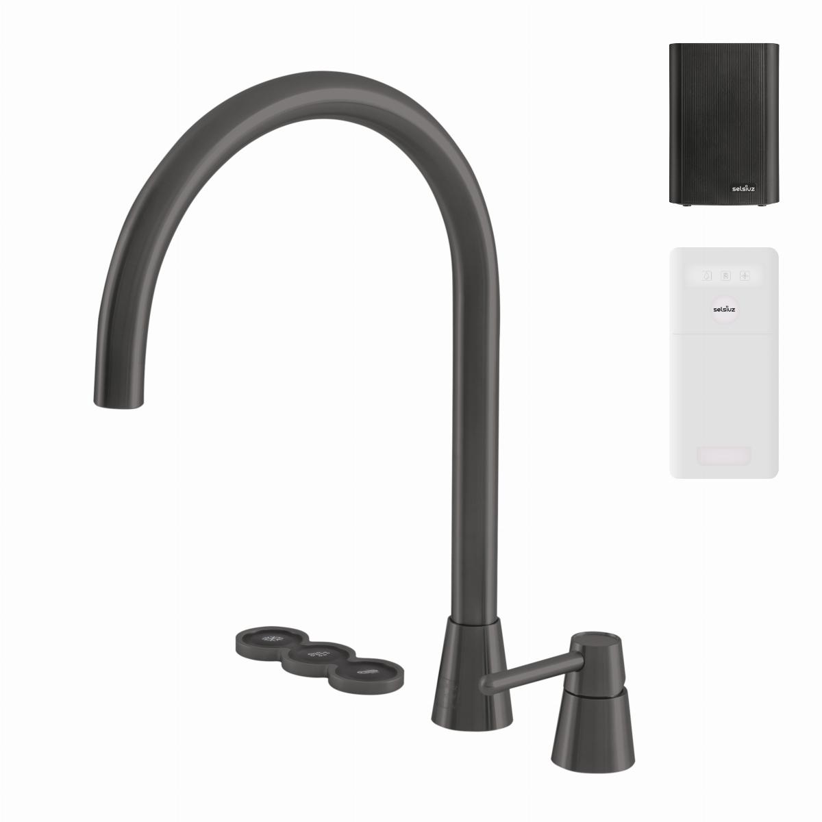De Cone Counter 5-in-1 is een alles-in-één kraan exclusief ontworpen door Osiris Hertman en geeft koud, warm, gekoeld, bruisend en kokend water. De stijlvolle elektronische drukknoppen zijn op het keukenblad gemonteerd. De kraan wordt geleverd met de Selsiuz Classic boiler en Selsiuz Cooler.