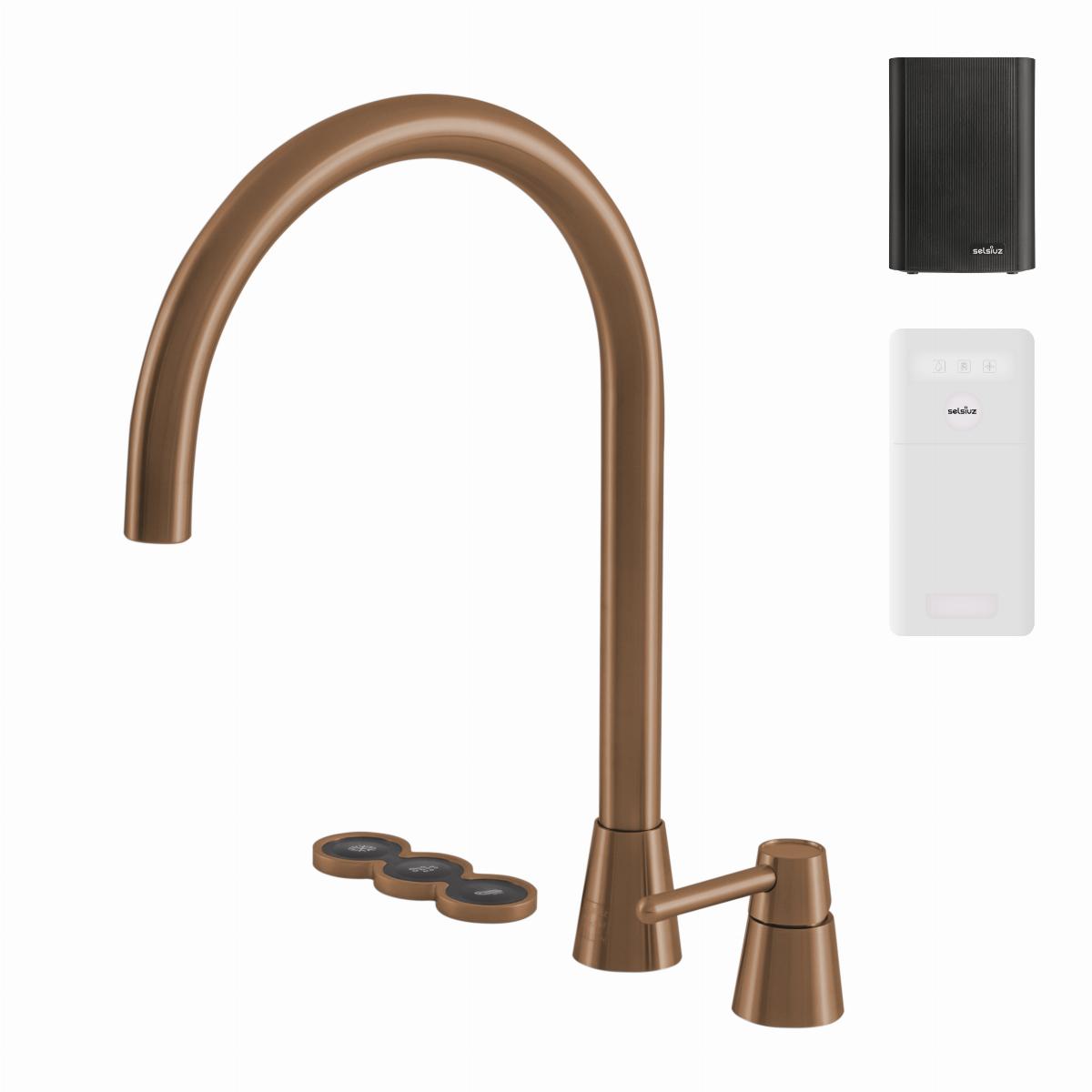 De Cone Counter 5-in-1 is een alles-in-één kraan exclusief ontworpen door Osiris Hertman en geeft koud, warm, gekoeld, bruisend en kokend water. De stijlvolle elektronische drukknoppen zijn op het keukenblad gemonteerd. De kraan wordt geleverd met de Selsiuz Classic boiler en Selsiuz Cooler.