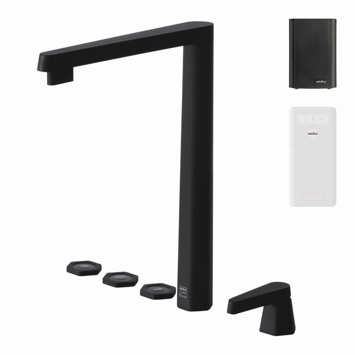 De Hexagon 5-in-1 is een alles-in-één kraan exclusief ontworpen door Osiris Hertman en geeft koud, warm, gekoeld, bruisend en kokend water. De kraan is voorzien van elektronische bediening op het keukenblad en wordt geleverd met de Selsiuz Classic boiler en Selsiuz Cooler.