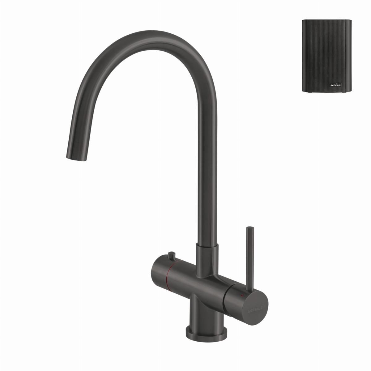 De Push & Turn 3-in-1 Rond heeft een veilige druk-draai bediening voor kokend water. De rechter hendel geeft koud en warm water. De kraan wordt geleverd met de Selsiuz Classic boiler.